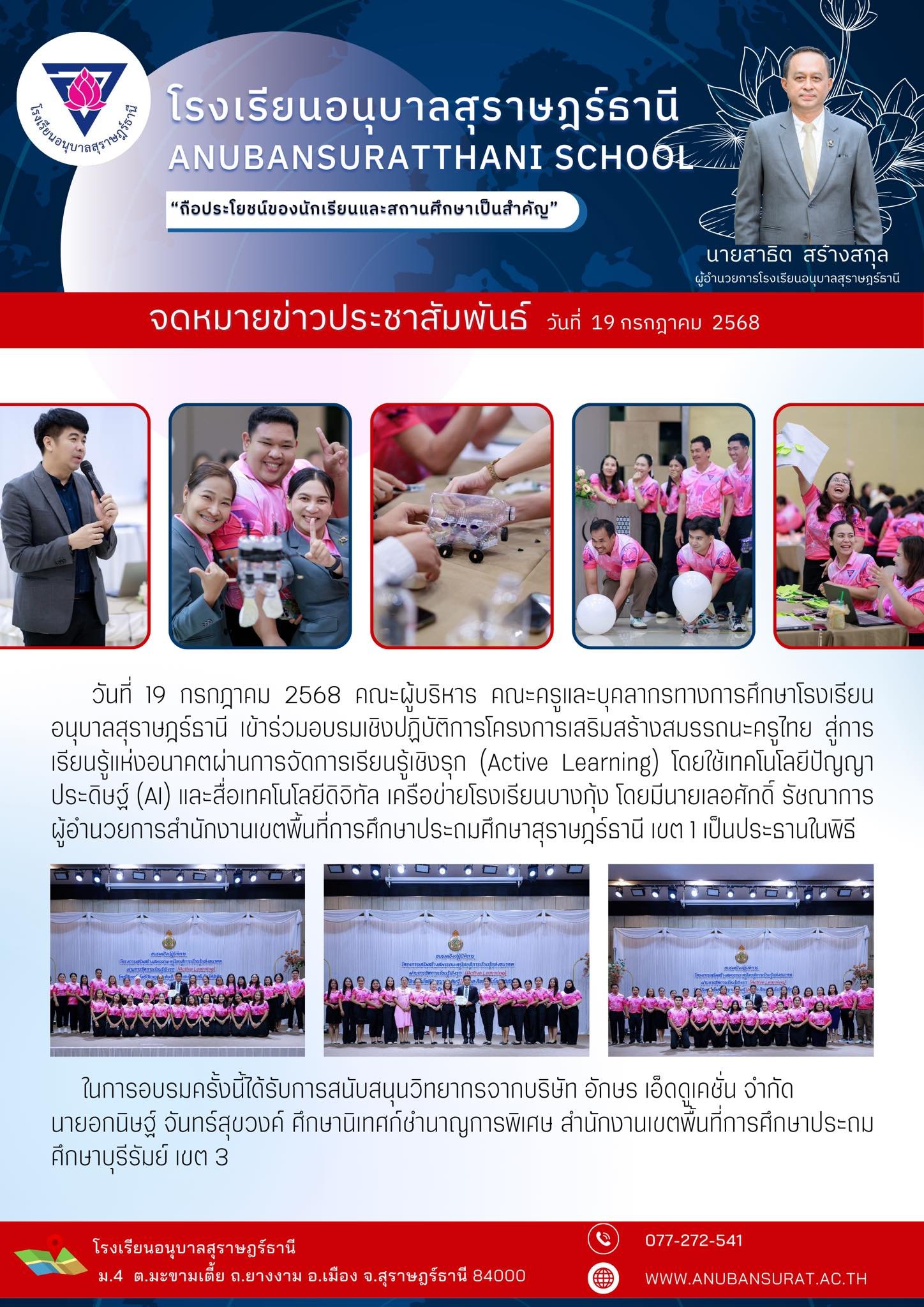 อบรมเชิงปฏิบัติการโครงการเสริมสร้างสมรรถนะครูไทย สู่การเรียนรู้แห่งอนาคตผ่านการจัดการเรียนรู้เชิงรุก (Active Learning) โดยใช้เทคโนโลยีปัญญาประดิษฐ์ (AI) และสื่อเทคโนโลยีดิจิทัล